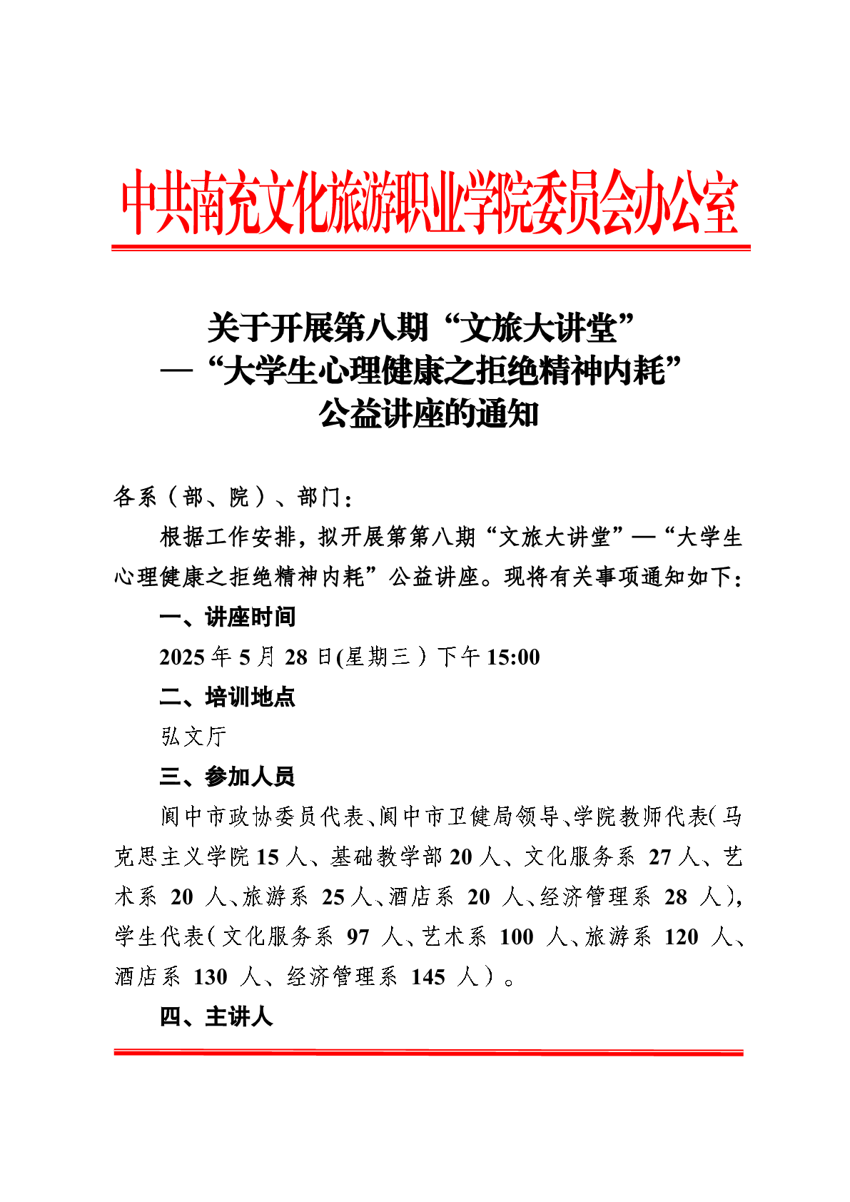 第八期 “文旅大讲堂”—“大学生心理健康之拒绝精神内耗”公益讲座的通知