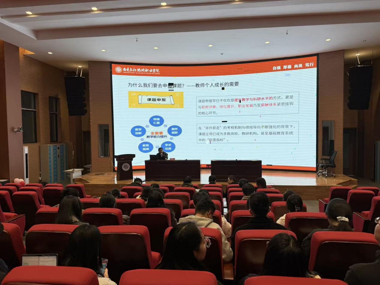 分享环节中,向程副主任结合自身丰富的科研工作经历和项目申报经验,围绕教育改革项目和社科联项目两大核心申报方向展开详细讲解。在教育改革项目申报方面,他从项目选题、方案设计、研究思路梳理等关键环节入手,强调选题要紧密贴合旅游专业教学实际,聚焦教学中的重点难点问题,突出实用性和创新性;同时,他还分享了申报书撰写的技巧,提醒教师们注重逻辑严谨性,合理规划研究步骤,充分体现项目的可行性和推广价值。