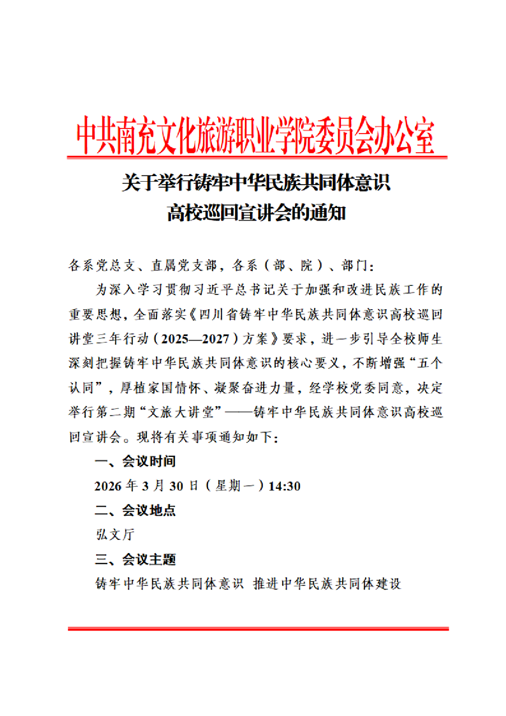 关于举行筑牢中华民族共同体意识高校巡回宣讲会的通知